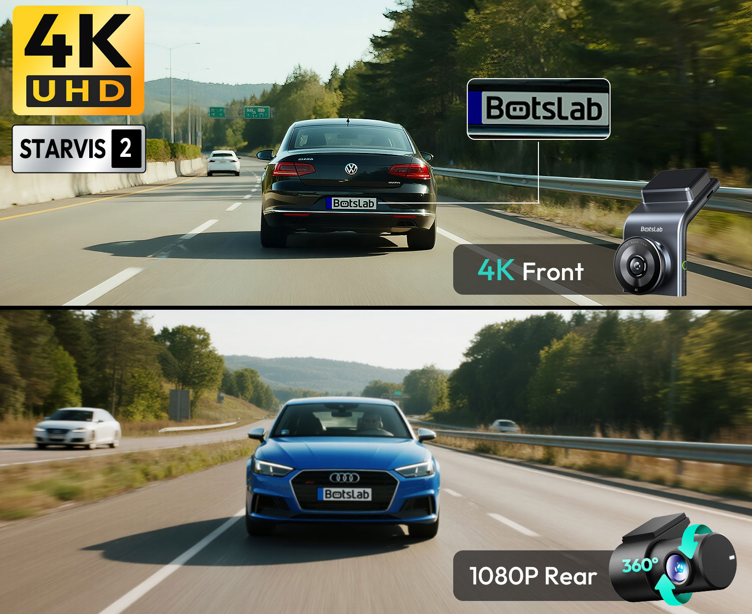 Die Botslab G300H Plus verwendet einen neuen Sony STARVIS 2-Bildsensor auf der Vorderseite. Dieser fortschrittliche Sensor liefert außergewöhnlich scharfe und kontrastreiche Bilder, insbesondere bei schlechten Lichtverhältnissen. Die Frontkamera filmt in Ultra HD 4K-Auflösung, während die Rückkamera in FullHD aufzeichnet.