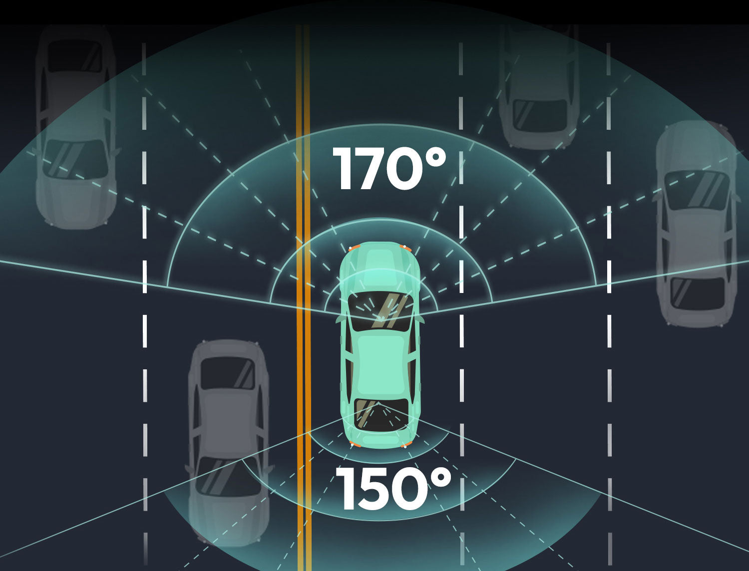 Dank dieser Kombination werden Verkehrssituationen, Kennzeichen und Details sowohl vor als auch hinter dem Fahrzeug tagsüber und nachts klar erfasst.