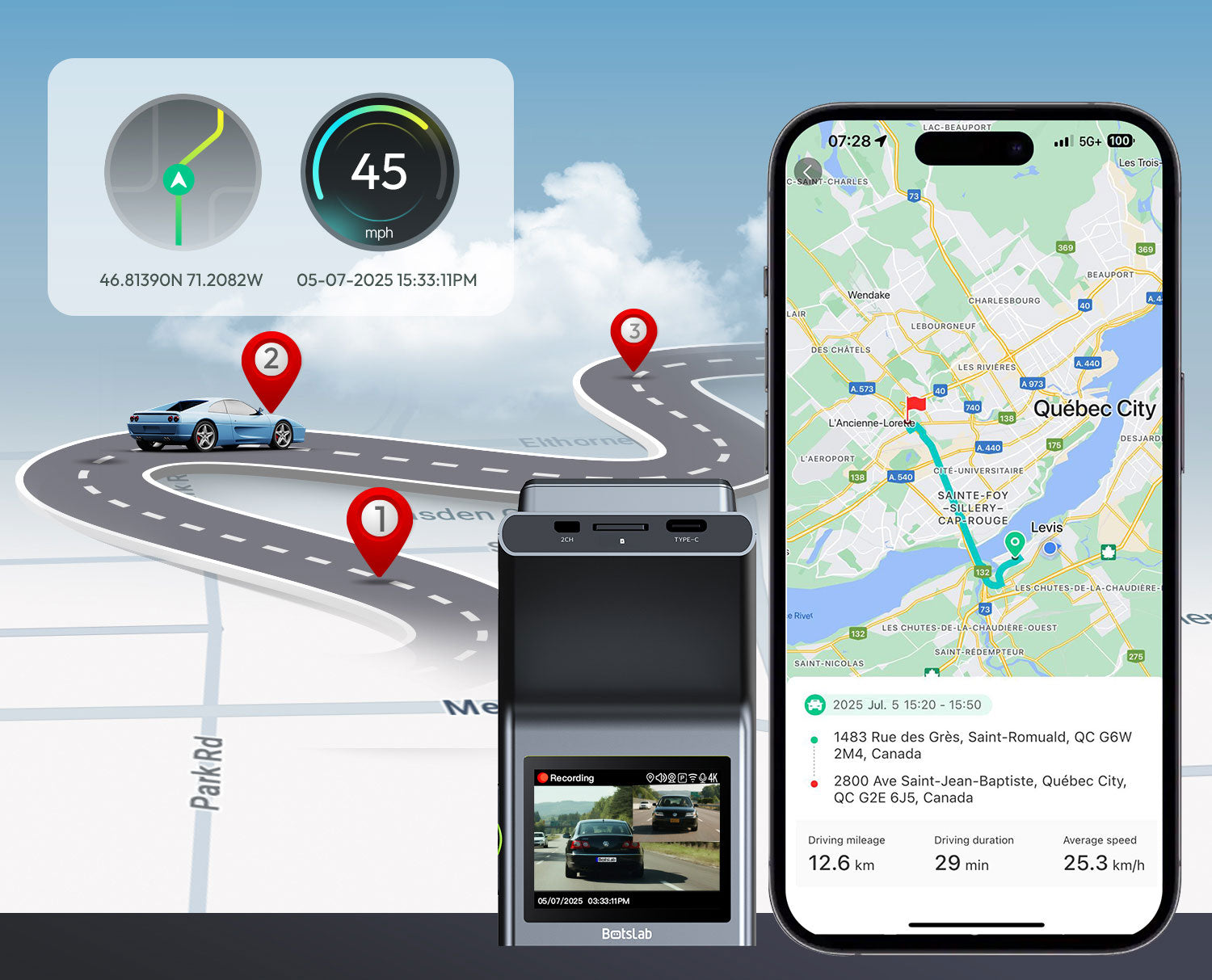 Die Botslab G300H Plus beginnt automatisch mit der Aufnahme, sobald das Auto gestartet wird, und stoppt, wenn die Zündung ausgeschaltet wird. So müssen Sie während der Fahrt nichts selbst bedienen.