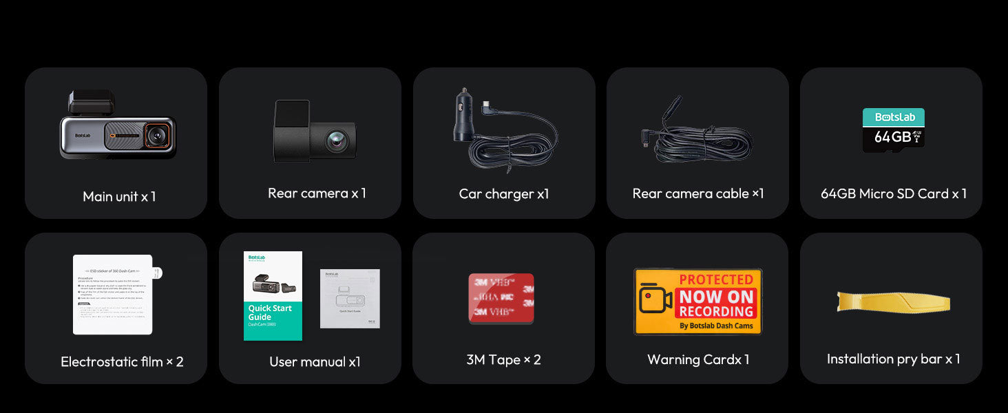 Diese Botslab G980H Pro Dashcam wird mit einer stabilen selbstklebenden Halterung geliefert, um die Kamera an der Scheibe zu befestigen. Die Kamera kann mit einer einzigen Schiebebewegung aus der Halterung genommen und wieder eingesetzt werden. Dadurch lässt sich die Dashcam leicht aus dem Auto entfernen.