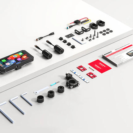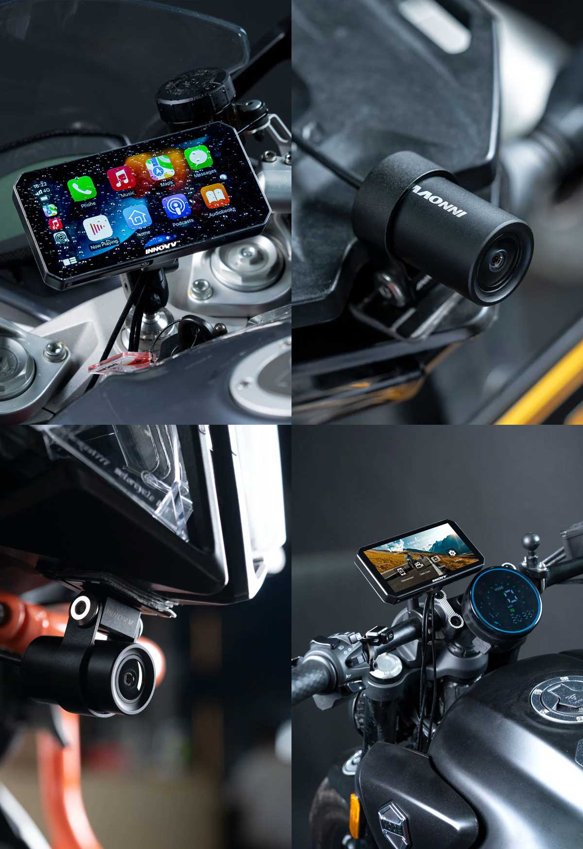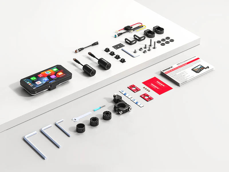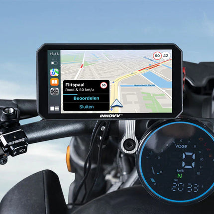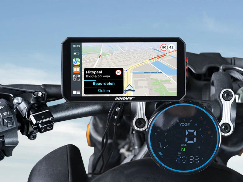 Diese Innovv N1 Pro ist eine hochmoderne Dashcam und ein Carplay-Monitor für Motorräder in einem. Beide FullHD-Kameras nehmen alles vor und hinter Ihnen auf, und Sie verbinden Ihr Telefon über Bluetooth mit dem Monitor am Lenker, um z. B. Google Maps oder andere Carplay-Apps zu nutzen. Darüber hinaus ist dieses Innovv mit allen bekannten Innovv-Spezifikationen wie WiFi und GPS ausgestattet.