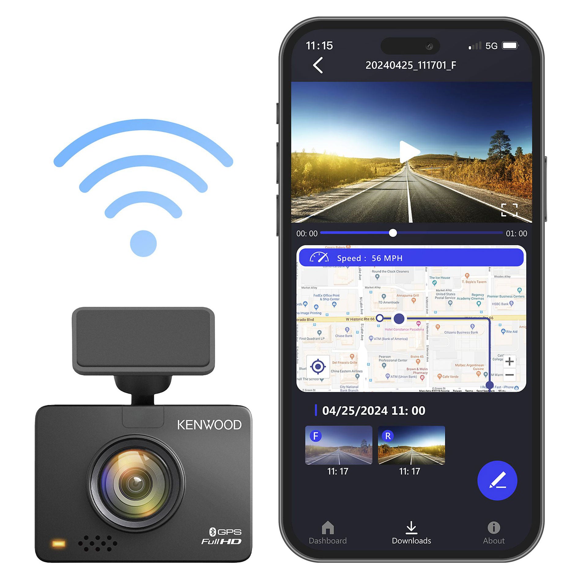 Über die Bluetooth- und WiFi-Verbindung können Sie die Dashcam ganz einfach über Ihr Smartphone bedienen. Das Ändern von Einstellungen und das Anzeigen von Bildern ist über die Kenwood-App ganz einfach. Eine Verbindung ist nur innerhalb der Reichweite (+/- 5 Meter) der Kamera möglich.