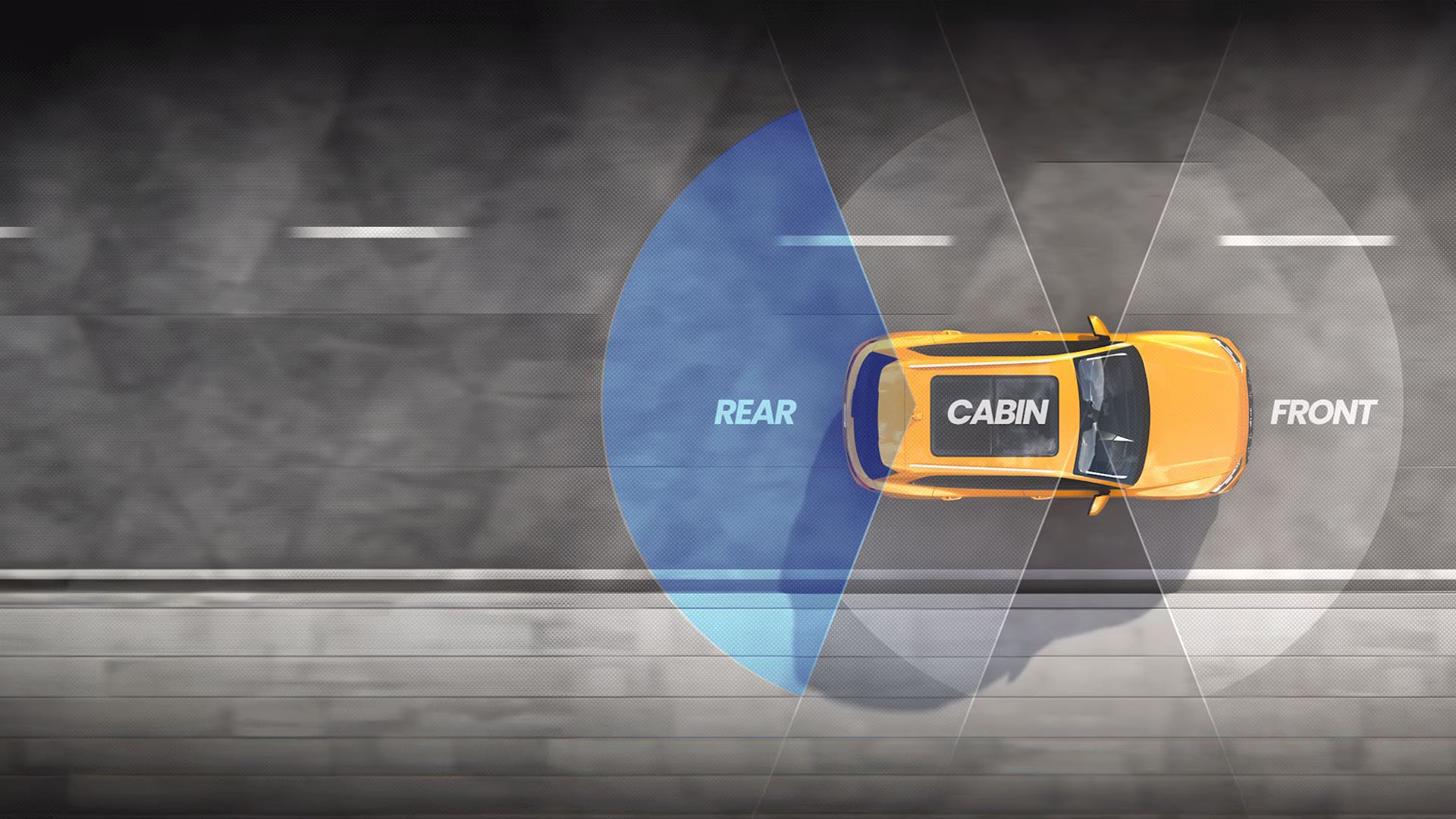 Mit einem Blickwinkel von 145 Grad wird ein großer Teil hinter dem Auto aufgezeichnet, sodass Sie nichts mehr verpassen. Insgesamt beträgt der Blickwinkel mit der Front- und Innenraumkamera 450 Grad, sodass Ihr Auto rundum geschützt ist.