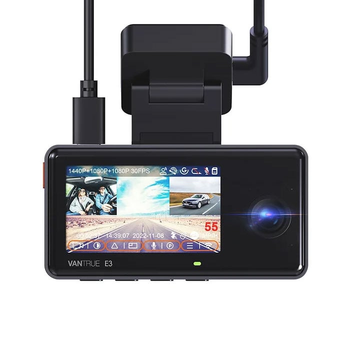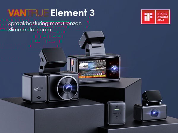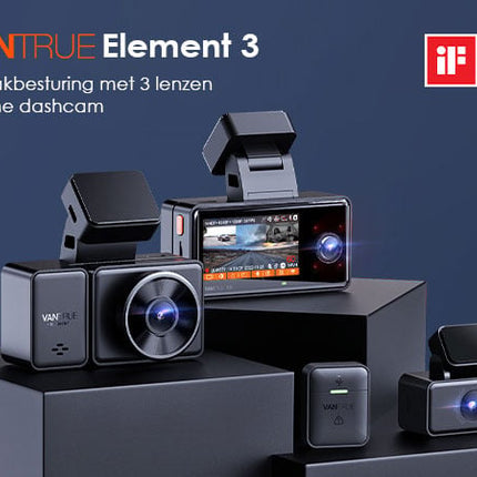 Die Vantrue Element 3 (E3) ist die ideale Dashcam für Aufnahmen vor, hinter und im Auto. Das liegt daran, dass die E3 mit 3 Kameras ausgestattet ist. Zwei Kameras filmen alles vor und hinter dem Auto und die integrierte Innenkamera mit Infrarot-LEDs filmt das Innere des Autos. Die Vantrue E3 ist daher ideal für Taxis oder um dein Auto beim Parken zu sichern. Außerdem hat die Vantrue E3 WiFi und GPS an Bord und verfügt über eine praktische Bluetooth-SOS-Taste.