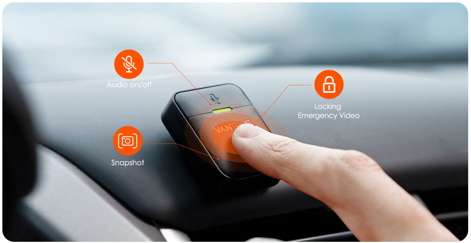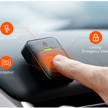 Das Vantrue E3 ist standardmäßig mit einer praktischen Bluetooth-SOS-Taste ausgestattet. Du platzierst diese Taste an einer beliebigen Stelle im Auto und kannst mit einem Tastendruck ein Foto und ein sicheres Video aufnehmen oder das Mikrofon der Dashcam ein- und ausschalten.