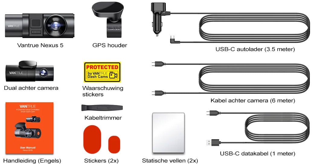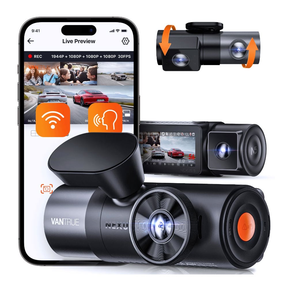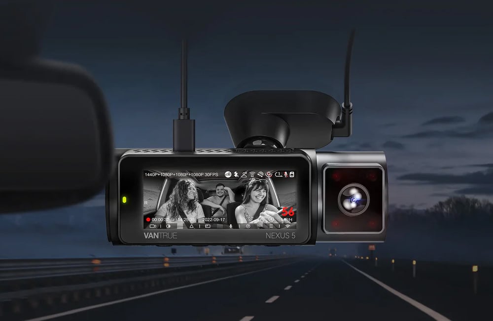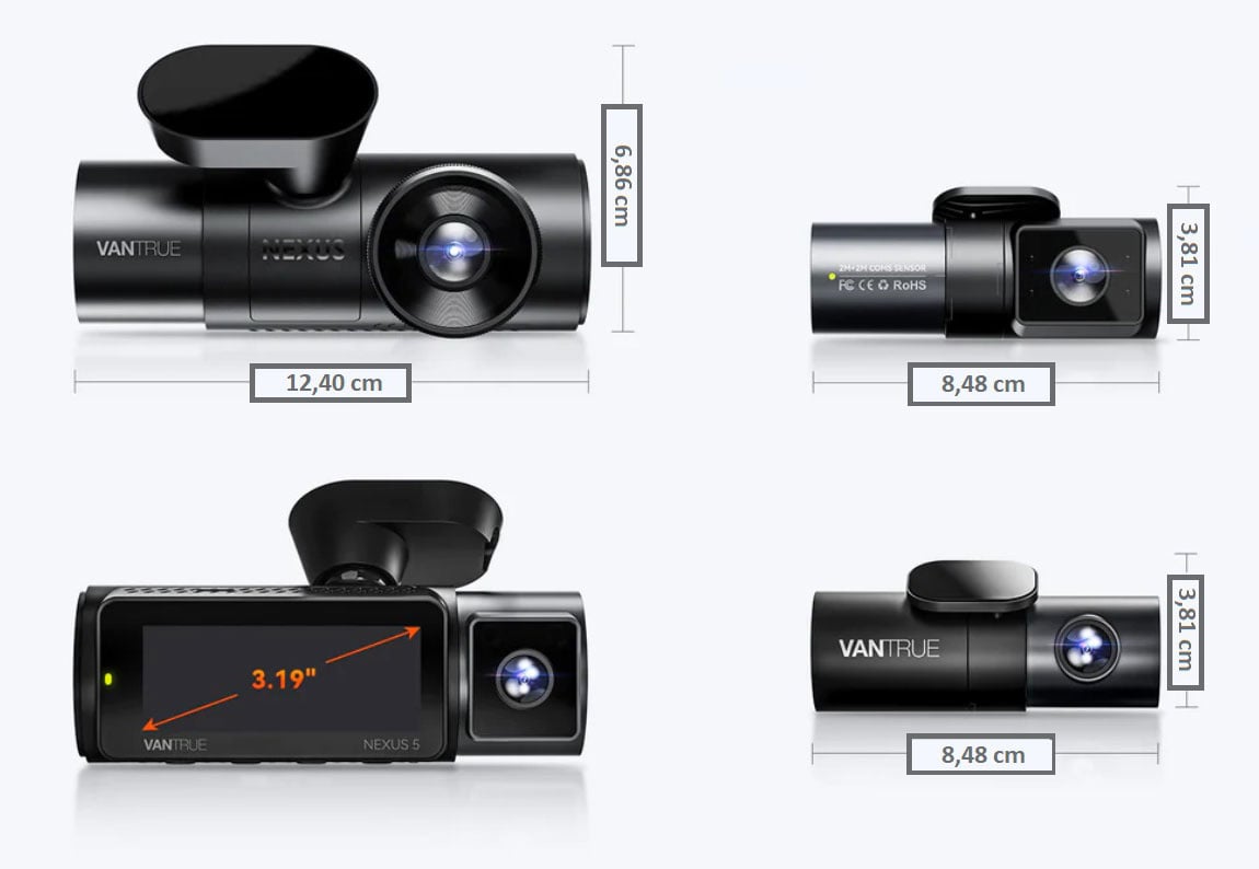 Die Vantrue Nexus 5 (N5) ist das Flaggschiff unter den Vantrue Dashcams. Diese Dashcam ist mit 4 Kameras ausgestattet und filmt daher alles im und um das Auto herum. Zwei Kameras befinden sich in der vorderen Dashcam und zwei in der hinteren Kamera. Die vordere und die hintere Kamera filmen auch den Innenraum und einen Bereich außerhalb des Autos von beiden Seiten. Die Vantrue N5 ist daher perfekt für die 360˚-Überwachung beim Einparken geeignet.