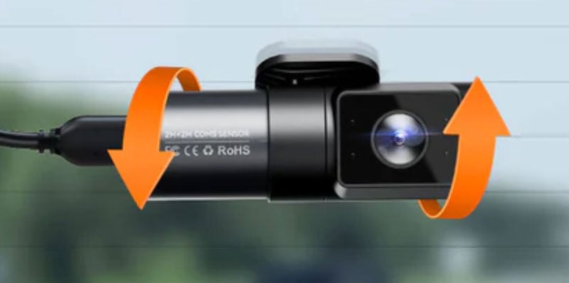 Die hintere Kamera ist mit der vorderen Dashcam über ein langes 6 Meter langes Kabel verbunden. Die Videos von beiden Kameras werden separat auf der SD-Karte gespeichert. Auf dem LCD-Bildschirm kann das Bild zwischen der vorderen und der hinteren Kamera oder beiden gleichzeitig umgeschaltet werden.