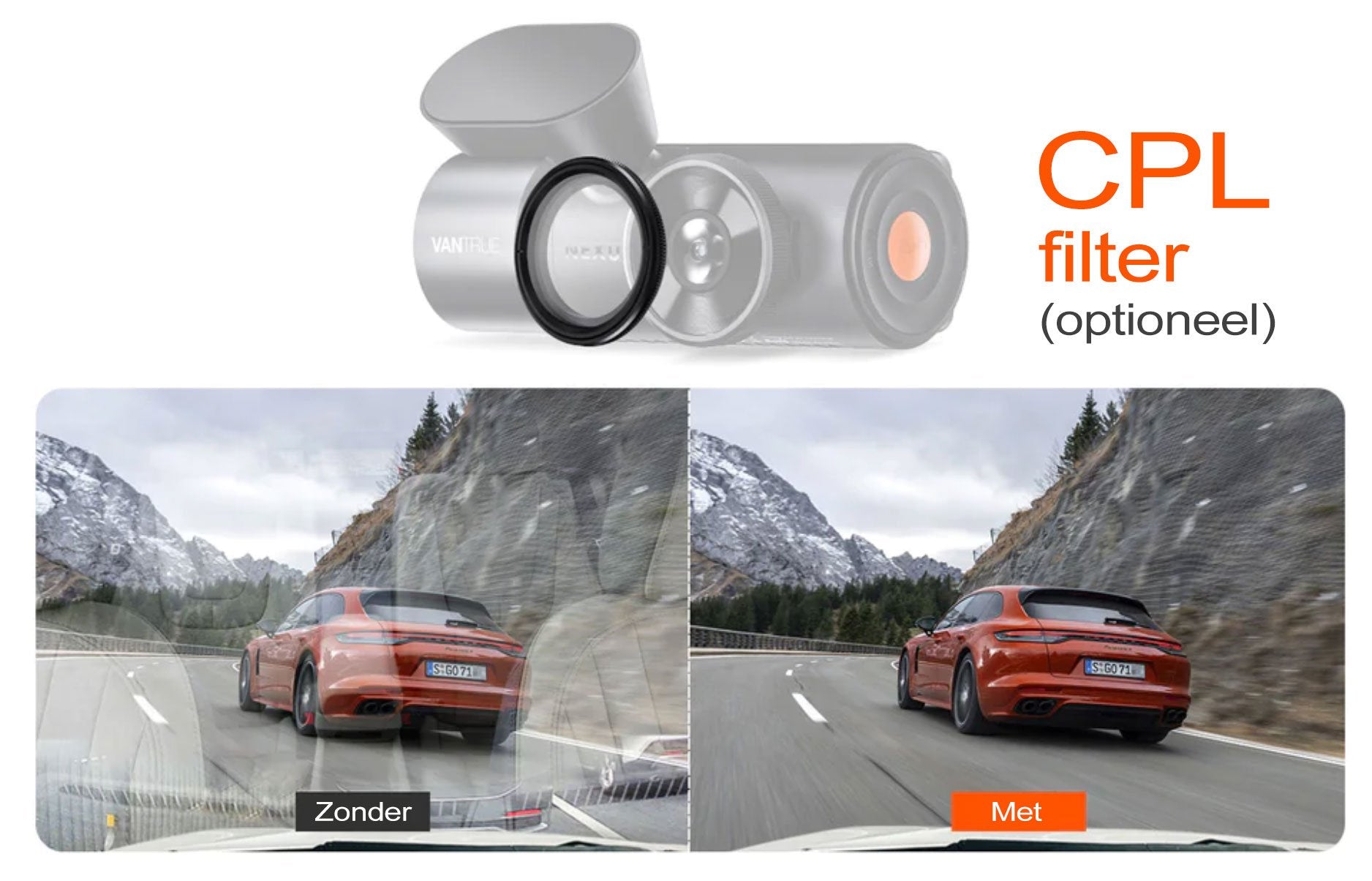 Bringe den optionalen CPL-Filter (Polaroid) an deiner Vantrue Dashcam an, um störende Reflexionen auf dem Armaturenbrett oder im Innenraum zu vermeiden. Der Filter lässt sich im Handumdrehen an der Dashcam anbringen und durch Drehen leicht einstellen.