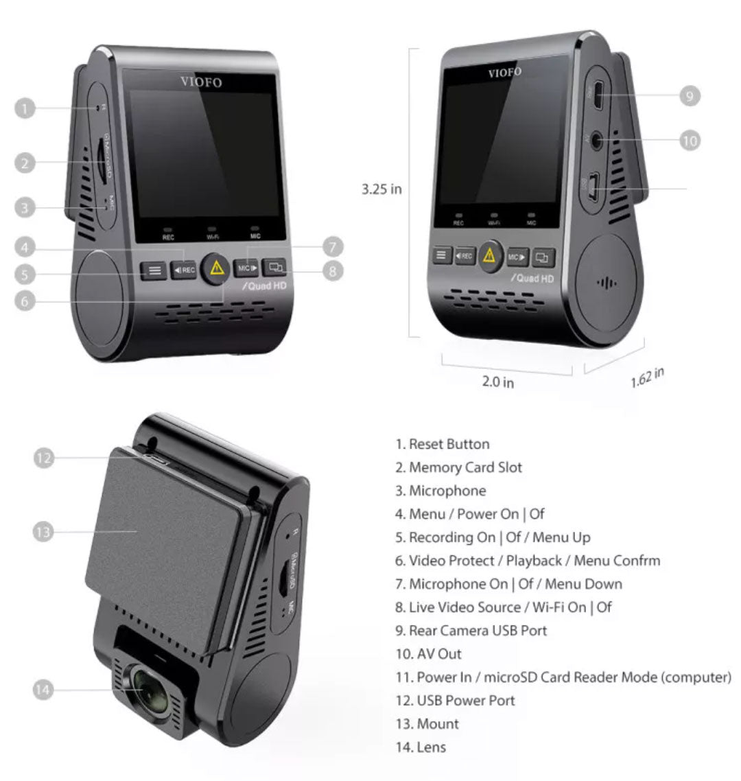Diese Viofo A129 Plus Duo 2K Dashcam verfügt über einen 2,0-Zoll-LCD-Bildschirm. Auf dem Bildschirm werden die Live-Bilder angezeigt und das Menü lässt sich einfach bedienen. Der integrierte Bildschirmschoner schaltet den LCD-Bildschirm auf Wunsch nach einer festgelegten Anzahl von Minuten automatisch aus, damit er den Fahrer nicht stört.
