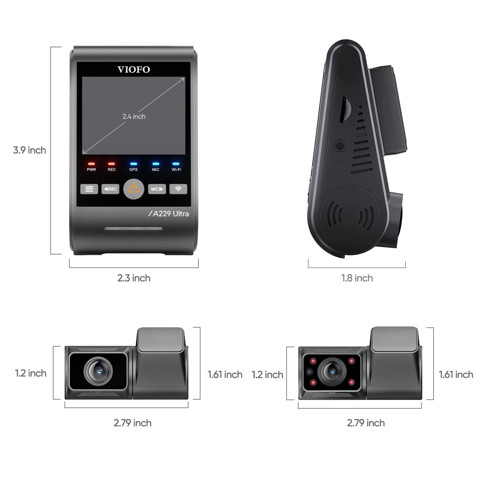 Diese Viofo A229 Ultra 3CH 4K WiFi GPS Dashcam verfügt über einen 2,4-Zoll-HD-LCD-Bildschirm. Auf dem Bildschirm werden die Live-Bilder angezeigt und das Menü lässt sich einfach bedienen. Der integrierte Bildschirmschoner schaltet den LCD-Bildschirm auf Wunsch nach einer festgelegten Anzahl von Minuten automatisch aus, damit er den Fahrer nicht stört.