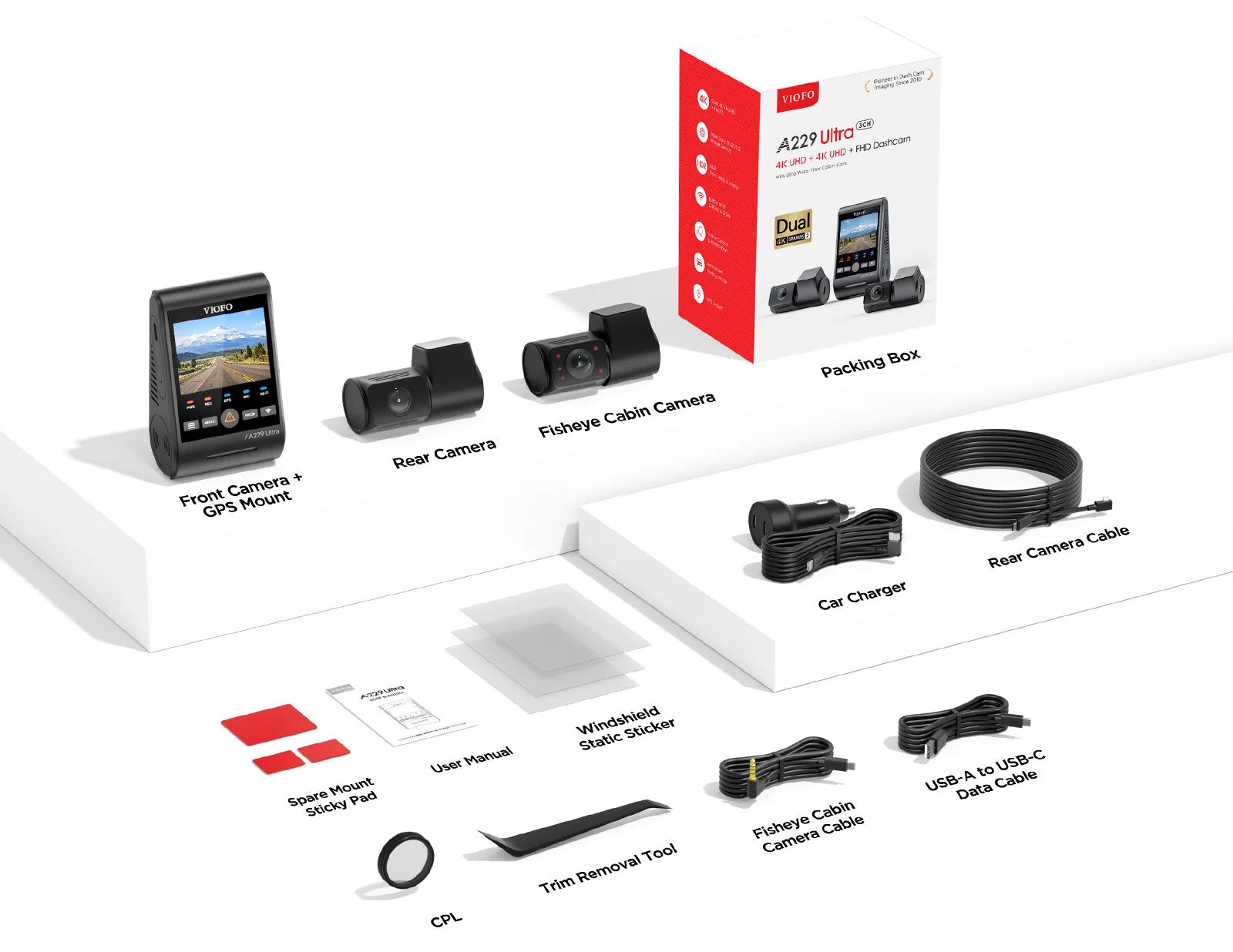 Die Viofo A229 Ultra 3CH ist die neueste 3-Kanal-Version der Viofo A229-Serie. Diese Ultra-Version filmt mit 4K-Auflösung vorne und hinten und FullHD für den Innenraum. Die Sony Starvis 2-Sensoren garantieren sowohl tagsüber als auch nachts Videos in bester Qualität. Mit dem integrierten 5,0-MP-Bildsensor Sony Starvis 2 liefert die A229 gestochen scharfe Bilder, sowohl vorne als auch hinten und im Innenraum des Fahrzeugs.