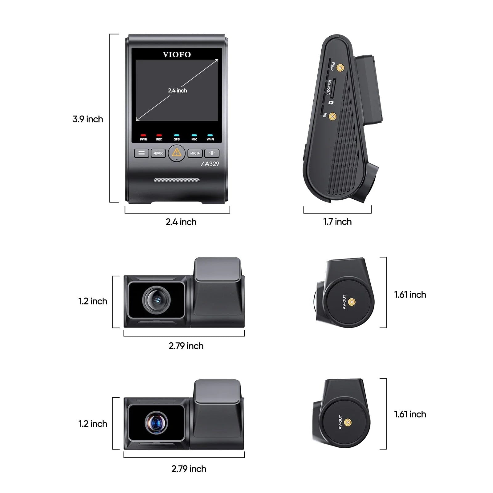 Die Viofo A329T 3CH ist die 3-Kanal-„Teleobjektiv”-Variante der beliebten A329-Serie. Die dritte Kamera wird an der Windschutzscheibe angebracht und nach hinten gerichtet. Sie hat einen kleinen Bildwinkel und filmt dank des eingebauten 4-fachen optischen Zoomobjektivs hinter dem Auto. Dadurch ist die A329T wesentlich einfacher zu installieren als die Standard-A329S, bei der die Rückfahrkamera an der Heckscheibe befestigt wird.