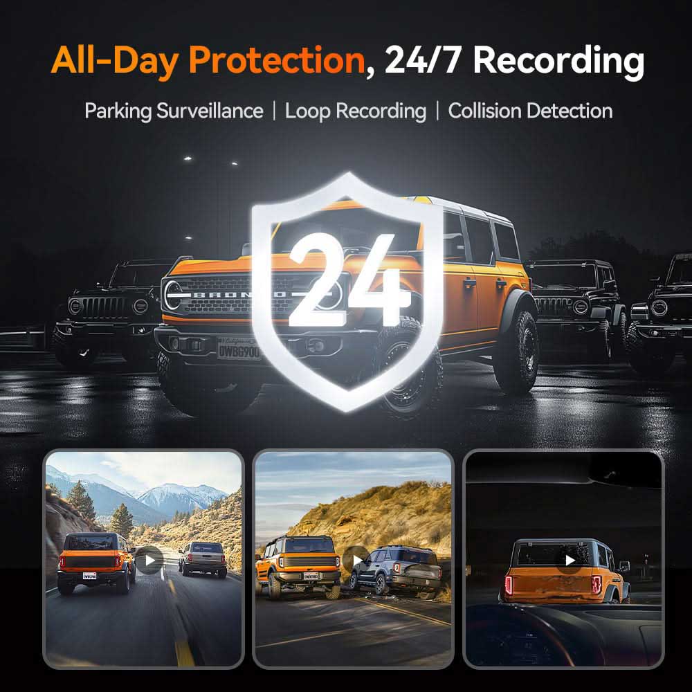 Diese G900 Tripro 4K verfügt über ein Weitwinkelobjektiv von 170 Grad in der Frontkamera und 150˚ in der Rückkamera. Dieser große Blickwinkel sorgt dafür, dass ein großer Teil rund um das Auto aufgenommen wird, sodass alles erfasst wird.