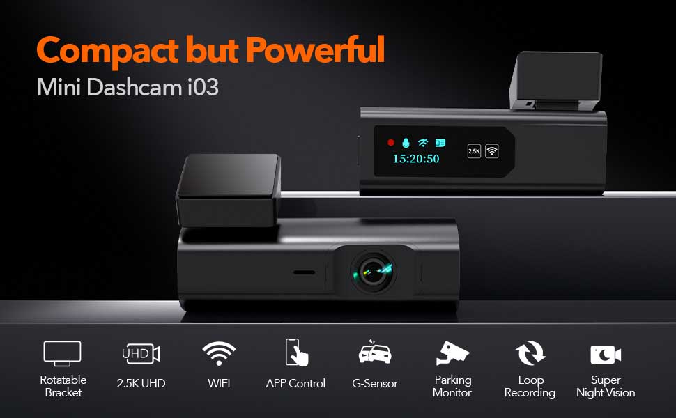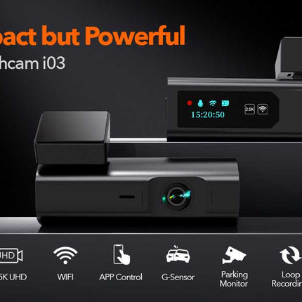 Die Wolfbox i03 ist die kleine und super stylische Einstiegs-Dashcam von Wolfbox. Diese kompakte, aber leistungsstarke Dashcam filmt alles in sehr guter Qualität mit 2,5K (1600p) Videos und die Nachtsichtfunktion sorgt dafür, dass die Videos auch bei Dunkelheit von sehr guter Qualität sind. Sie können sie ganz einfach mit Ihrem Telefon verbinden, um das Filmmaterial anzusehen und die Einstellungen kabellos zu ändern.