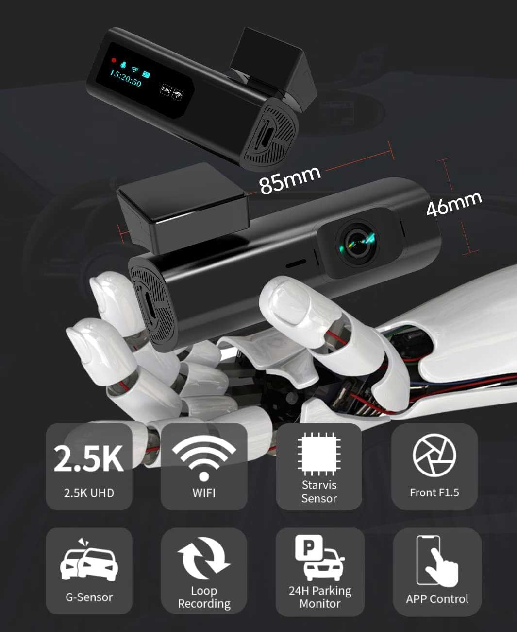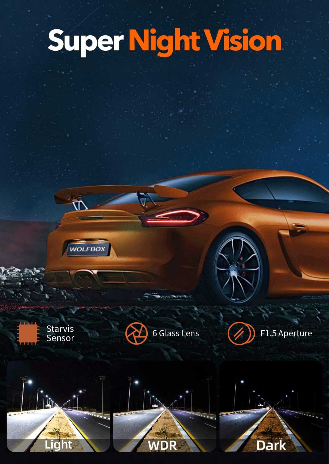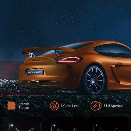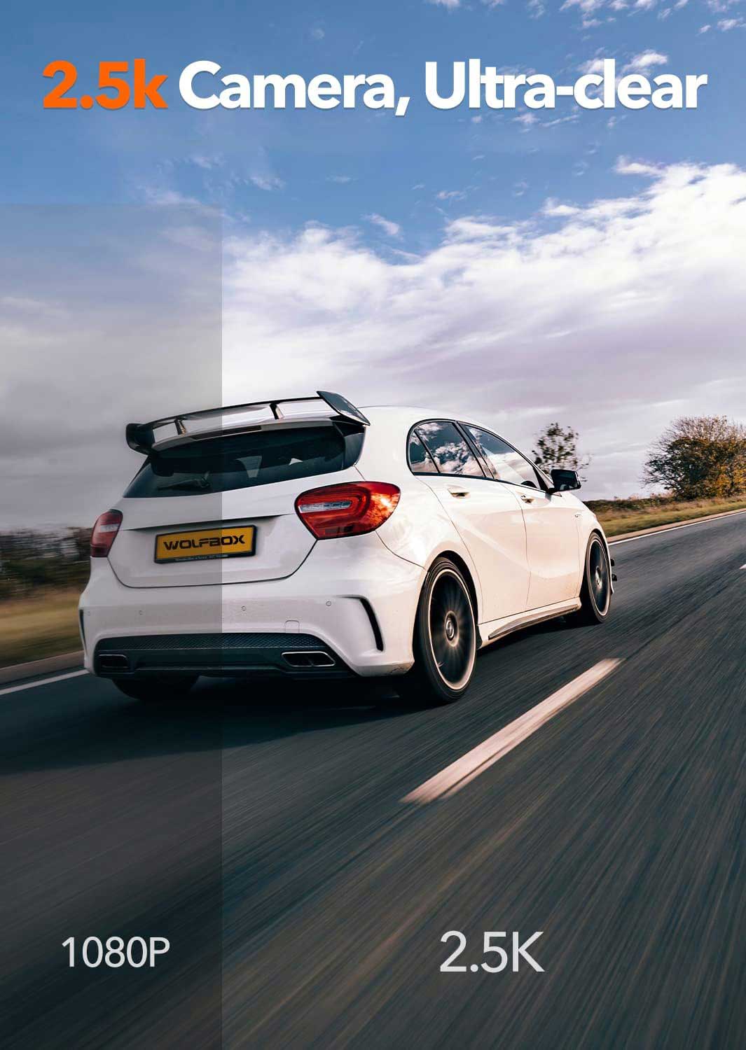 Der 5,0-Megapixel-Sony-Starvis-Sensor in dieser Wolfbox i03 garantiert kristallklare Videos, insbesondere bei Nacht. Die Videos haben eine Auflösung von 2,5K bei 30 Bildern pro Sekunde, was bedeutet, dass Personen und Autos deutlich sichtbar sind.