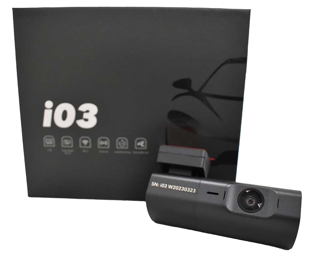 Diese i03 2K WiFi Dashcam verfügt über ein 170-Grad-Weitwinkelobjektiv auf der Vorderseite.