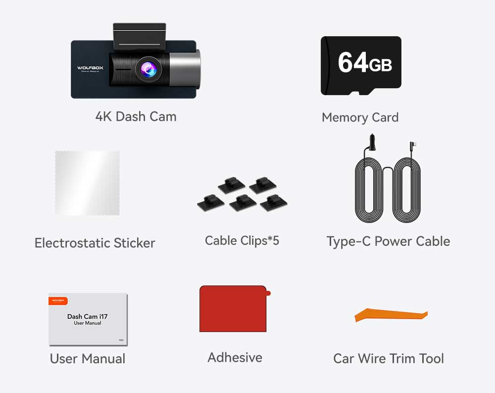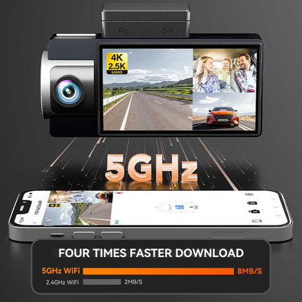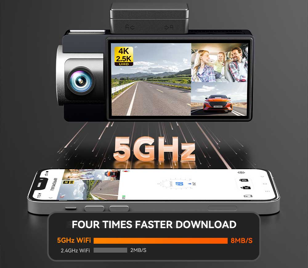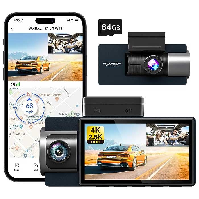 Die Wolfbox i17 3CH ist mit superschnellem 5,8-GHz-WiFi ausgestattet, das schnellere Videodownloads ermöglicht. Das WiFi hat eine Reichweite von etwa 10 Metern und die Wolfbox-App ist für Android- und iPhone-Telefone verfügbar. Einstellungen können auch einfach über die App geändert werden.