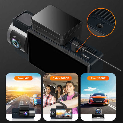 Diese i17 3CH 4K WiFi-Dashcam verfügt über ein Weitwinkelobjektiv mit 170 Grad an der Vorderseite und 150 Grad an der Innen- und Rückseite.