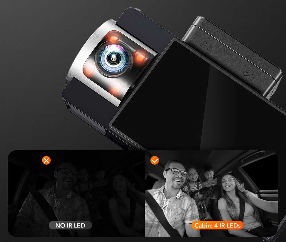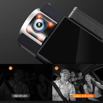 Die i17 3CH 4K WiFi-GPS-Dashcam filmt mit einer sehr hochwertigen 4K-Auflösung von 3840p bei 30 Bildern pro Sekunde auf der Vorderseite und FullHD auf der Innen- und Rückseite. Die i17 3CH liefert eine hervorragende Leistung, insbesondere bei Dunkelheit. Der 8,0-Megapixel-Sony-Starvis-IMX335-Sensor in dieser Dashcam garantiert kristallklare Videos. Für eine noch bessere Nachtsicht ist die Innenkamera mit vier Infrarot-LEDs ausgestattet.